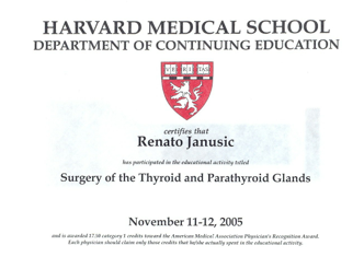 ‣tijekom godina usavršavanje u području tumorske kirurgije glave i vrata, plastično-rekonstruktivne kirurgije, laserske kirurgije grla i glasnica, ultrazvučne dijagnostike štitnjače i vrata, kirurgije štitnjače (uključujući i endoskopske operacije štitnjače) na brojnim tečajevima i klinikama (New York, San Francisco, Boston, Milano, Pisa, Madrid, Freiburg, Berlin)